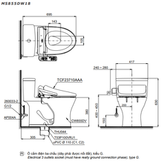 Bồn cầu điện tử TOTO MS855DW18 nắp rửa Washlet TCF23710AAA C2 Simple